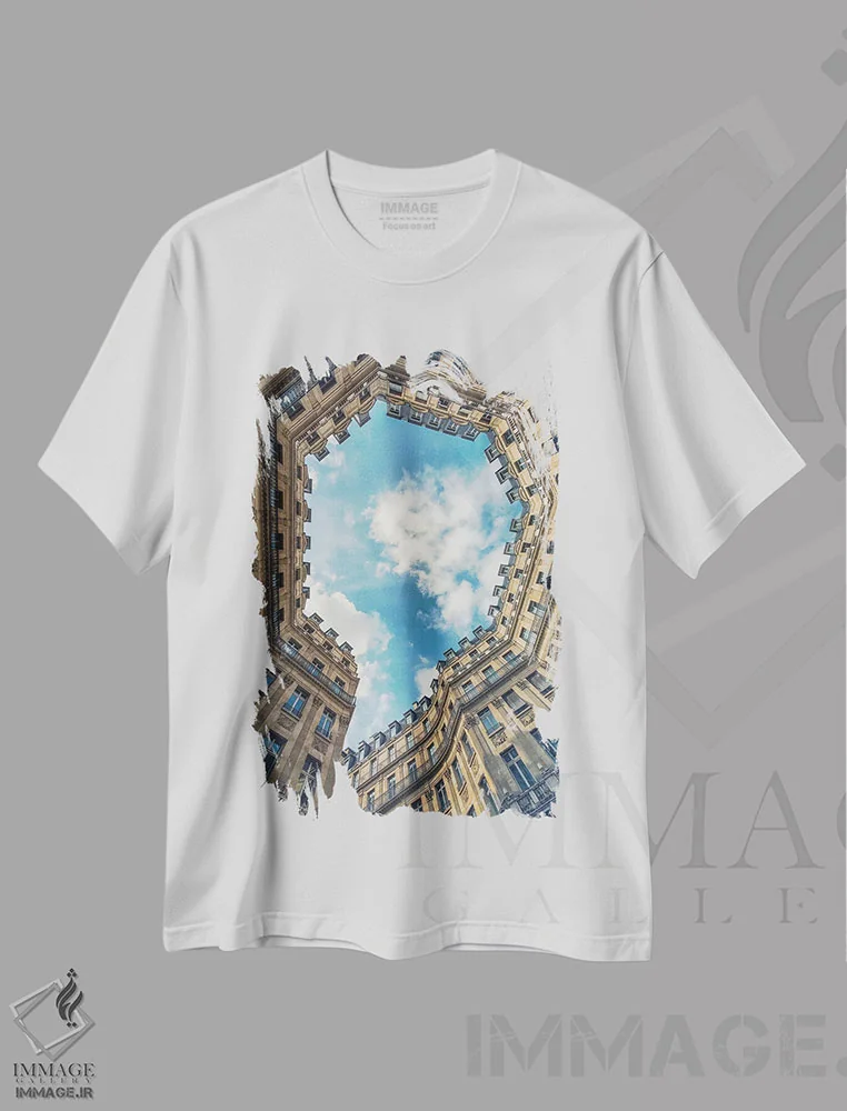 تیشرت سفید طرح دار مرکز شهر پاریس، مدیوم اثر مانجیک پیکچرز | فروشگاه ایماژ تیشرت طرح دار مرکز شهر پاریس اثر مانجیک پیکچرز