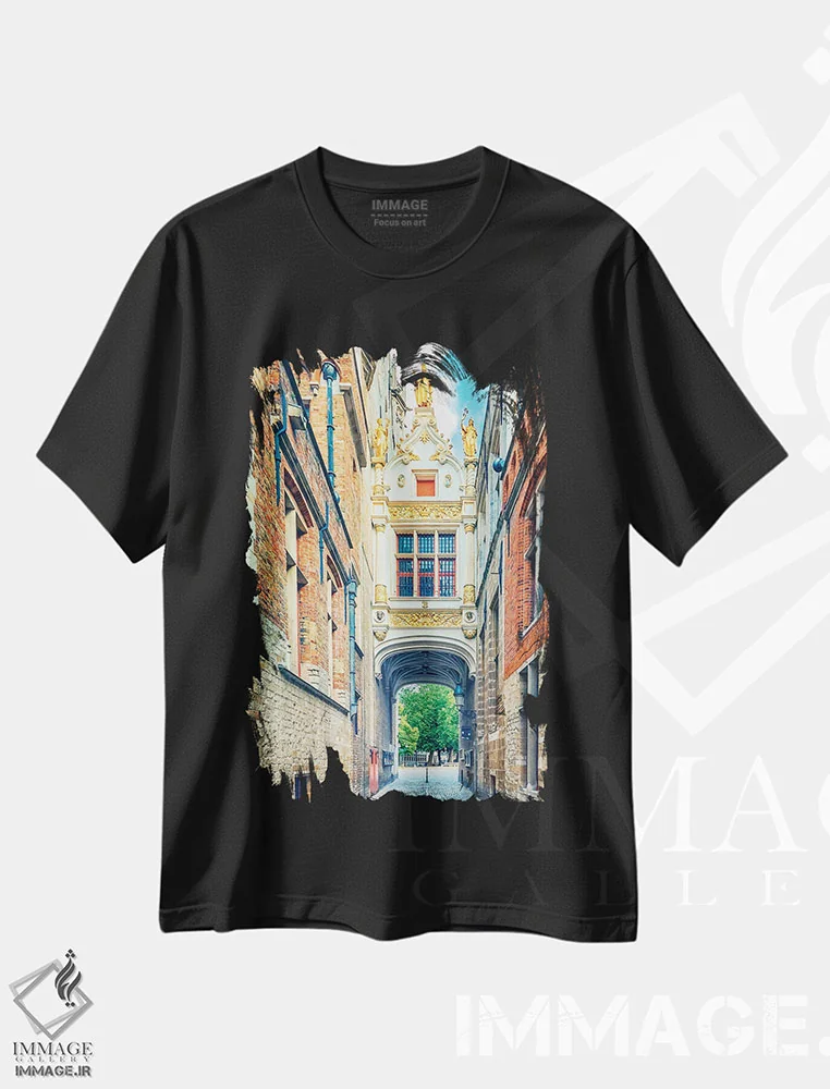 تیشرت مشکی طرح دار خیابان در بروژ، مدیوم اثر مانجیک پیکچرز | فروشگاه ایماژ تیشرت طرح دار خیابان در بروژ اثر مانجیک پیکچرز