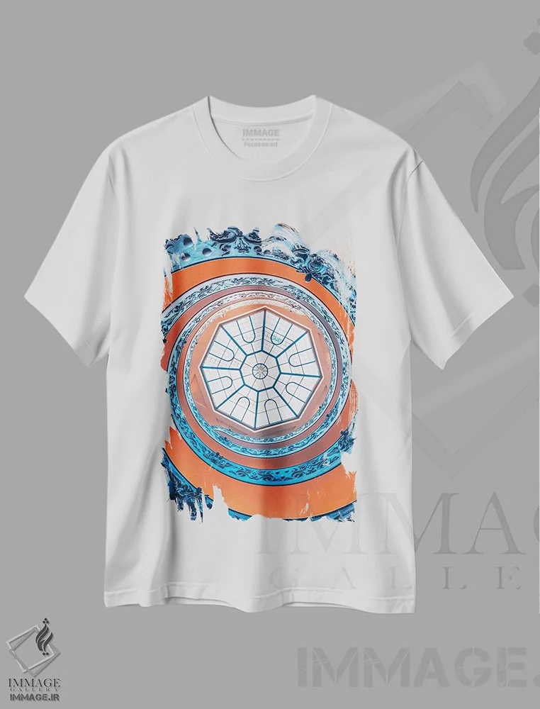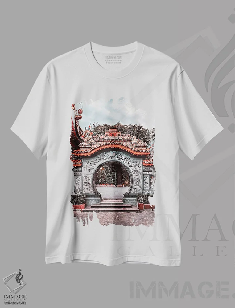 تیشرت سفید طرح دار رنگ های تاج محل، دکور آسیایی اثر مانجیک پیکچرز | فروشگاه ایماژ تیشرت طرح دار رنگ های تاج محل اثر مانجیک پیکچرز