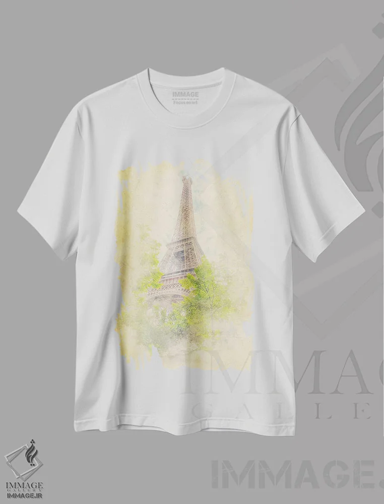 تیشرت سفید طرح دار آبرنگ برج ایفل، مدیوم اثر مانجیک پیکچرز | فروشگاه ایماژ تیشرت طرح دار آبرنگ برج ایفل اثر مانجیک پیکچرز