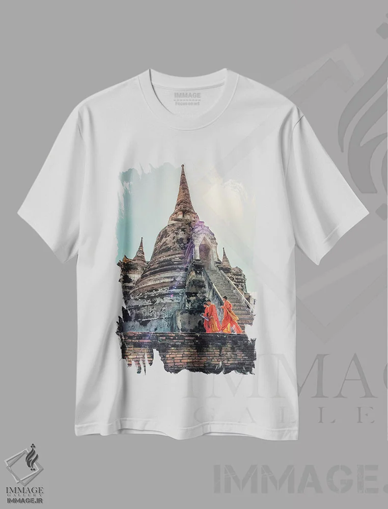 تیشرت سفید طرح دار معماری آیوتایا، مدیوم اثر مانجیک پیکچرز | فروشگاه ایماژ تیشرت طرح دار معماری آیوتایا اثر مانجیک پیکچرز