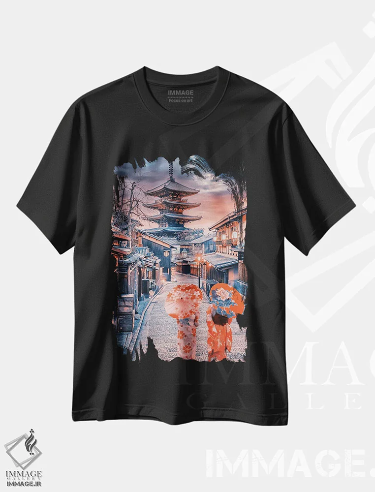 تیشرت مشکی طرح دار غروب در کیوتو، مدیوم اثر مانجیک پیکچرز | فروشگاه ایماژ تیشرت طرح دار غروب در کیوتو اثر مانجیک پیکچرز