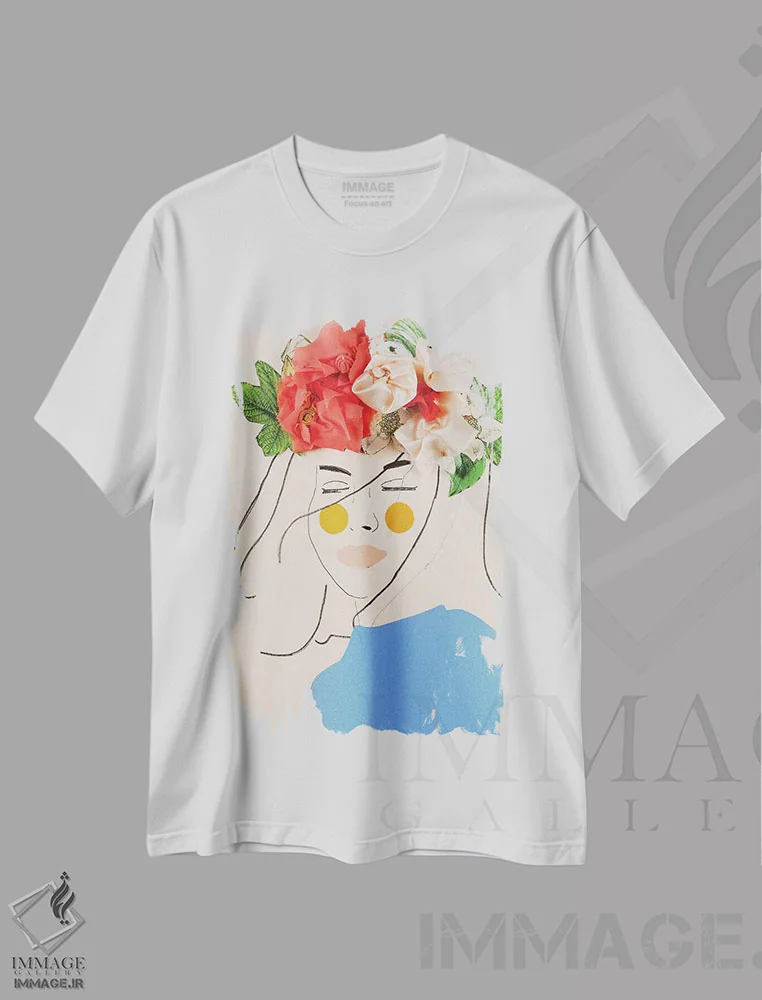تیشرت سفید طرح دار – تیشرت هنری زنانه ,سر گل یک اثر مردیت استیل فروشگاه ایماژ تیشرت طرح هنری زنانه ,سر گل یک اثر مردیت استیل