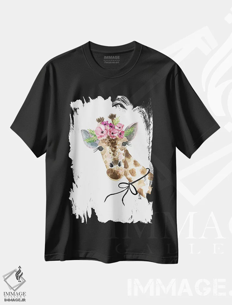 تیشرت مشکی طرح دار – تیشرت حیوانات ,"تاج گل زرافه" اثر مرسدس لوپز چارّو فروشگاه ایماژ