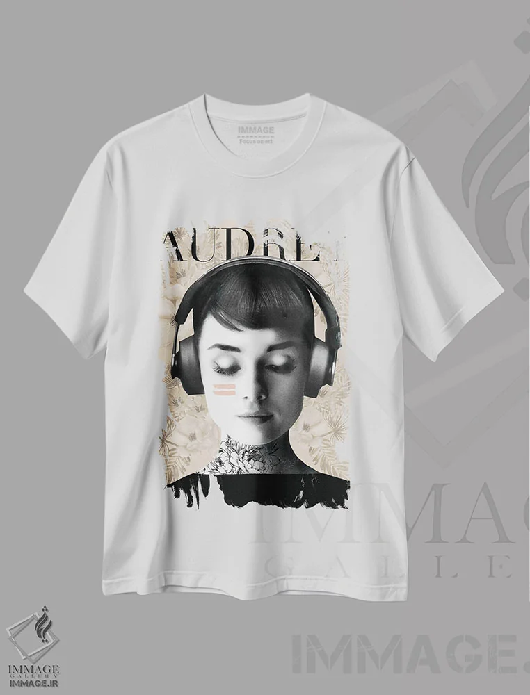 تیشرت سفید طرح دار – تیشرت هنری زنانه ,"هدفون آدری" اثر مرسدس لوپز چارّو فروشگاه ایماژ