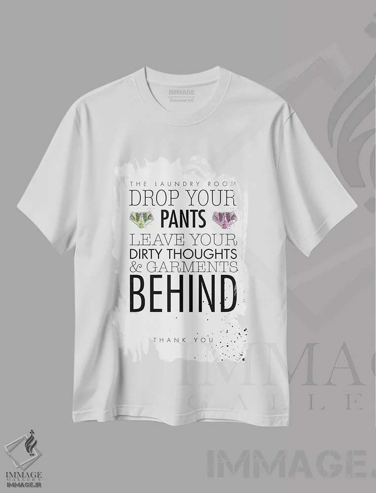 تیشرت سفید طرح دار – تیشرت تایپوگرافی ,"شلوارهایت را پایین بینداز" اثر مرسدس لوپز چارّو فروشگاه ایماژ