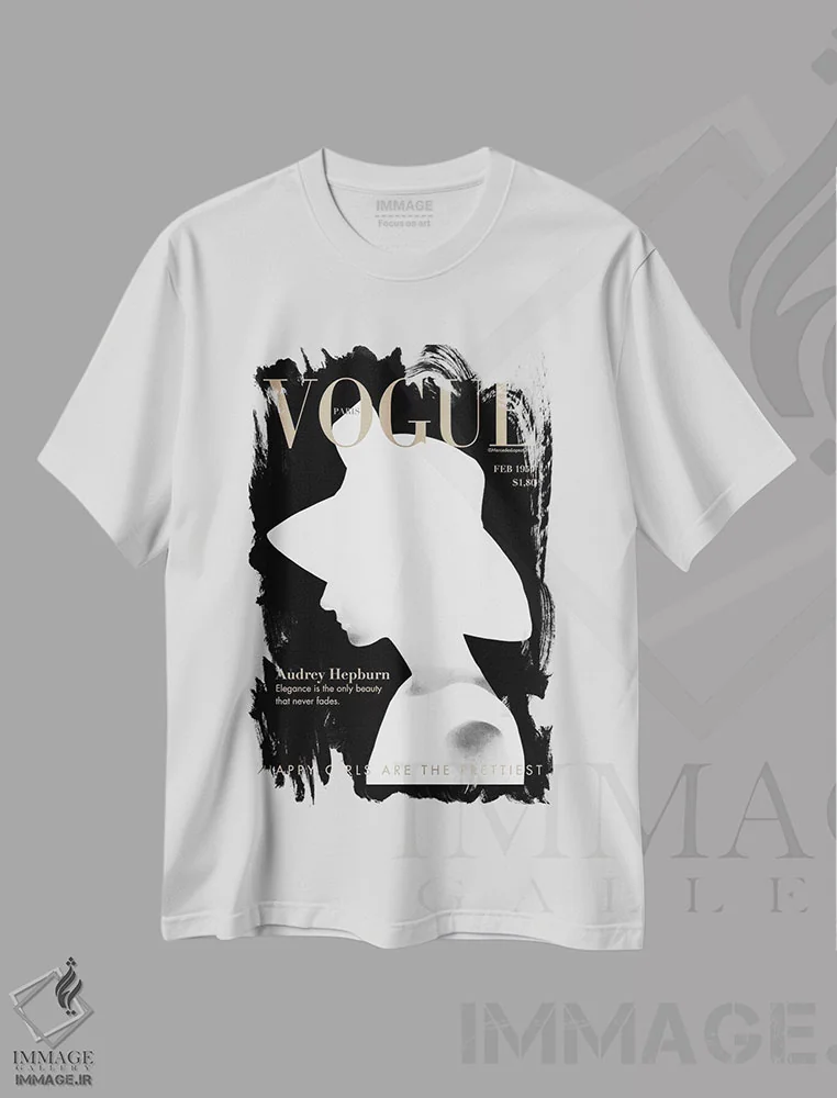 تیشرت سفید طرح دار – تیشرت هنری ,"آدری ووگ" اثر مرسدس لوپز چارّو فروشگاه ایماژ
