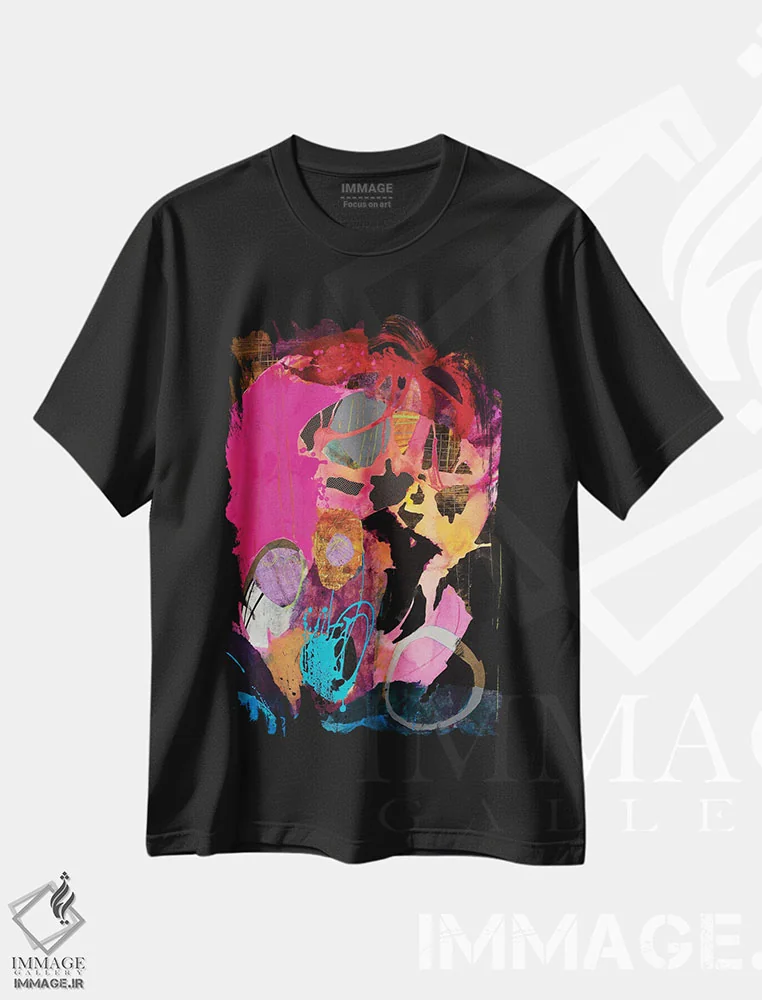 تیشرت مشکی طرح دار – تیشرت هنری آبستره ,رنگ مالی اثر مری مارلی فروشگاه ایماژ تیشرت طرح هنری آبستره ,رنگ مالی اثر مری مارلی