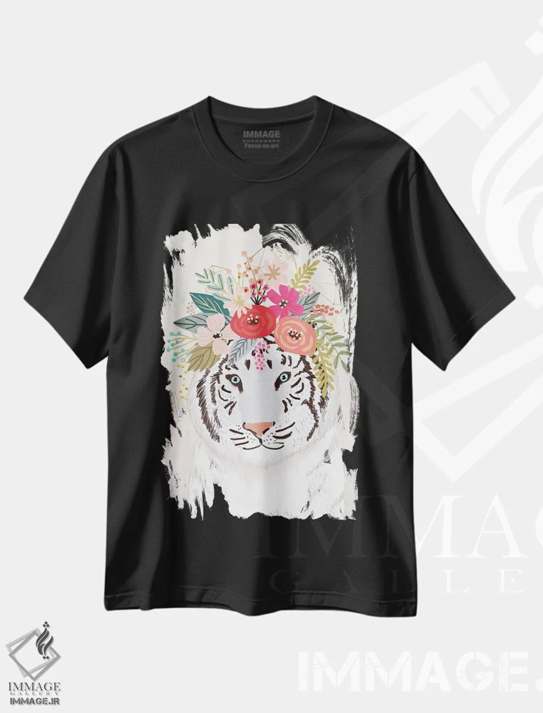 تیشرت مشکی طرح دار – تیشرت حیوانات ,ببر سفید اثر میا چارّو فروشگاه ایماژ تیشرت طرح حیوانات ,ببر سفید اثر میا چارّو