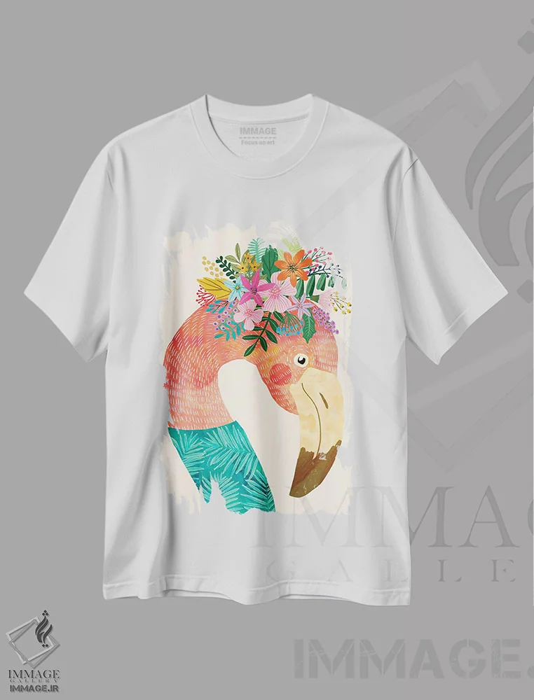 تیشرت سفید طرح دار – تیشرت حیوانات ,فلامینگو اثر میا چارّو فروشگاه ایماژ تیشرت طرح حیوانات ,فلامینگو اثر میا چارّو