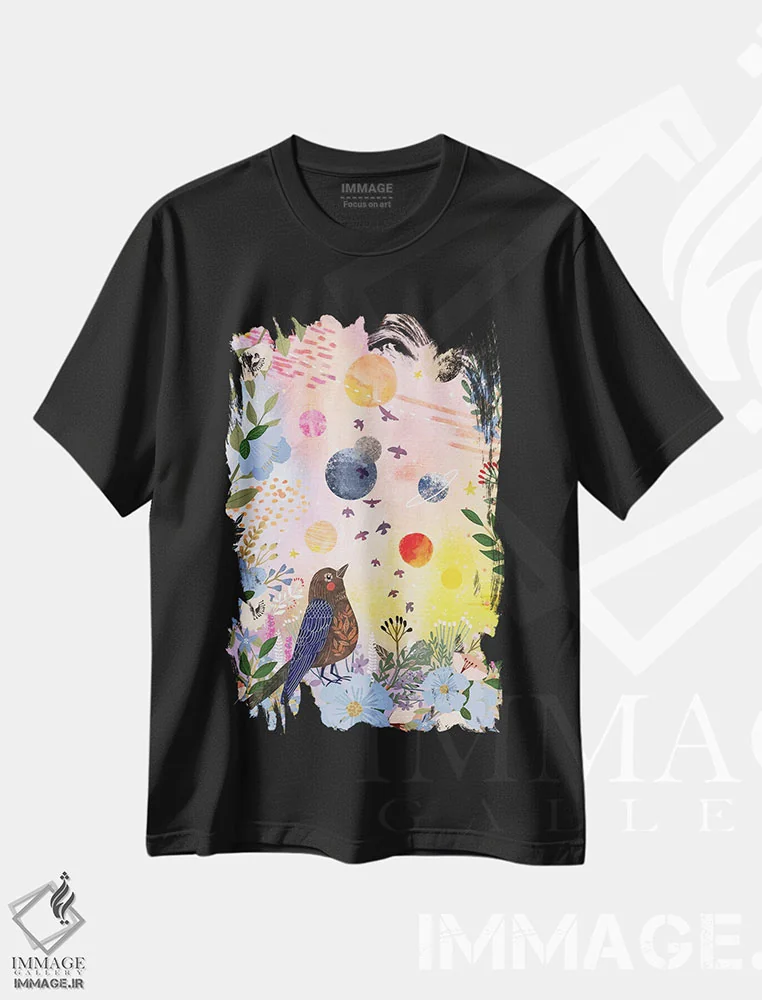 تیشرت مشکی طرح دار – تیشرت طبیعت ,پرندگان اثر میا چارّو فروشگاه ایماژ تیشرت طرح طبیعت ,پرندگان اثر میا چارّو
