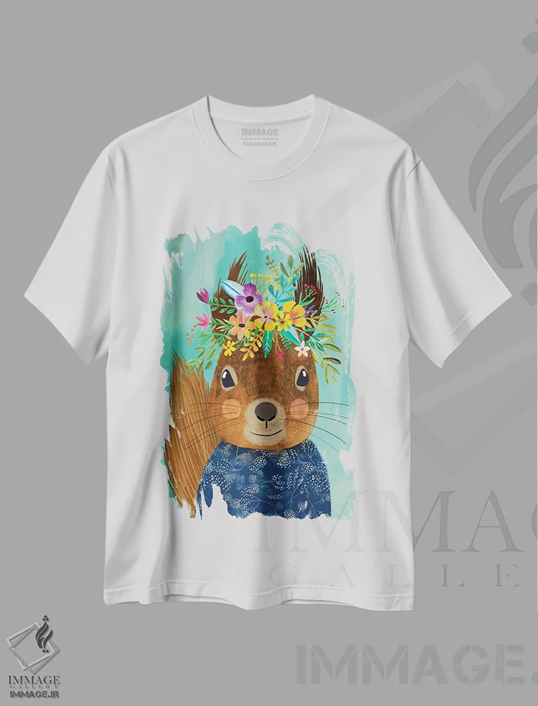 تیشرت سفید طرح دار – تیشرت حیوانات ,سنجاب اثر میا چارّو فروشگاه ایماژ تیشرت طرح حیوانات ,سنجاب اثر میا چارّو