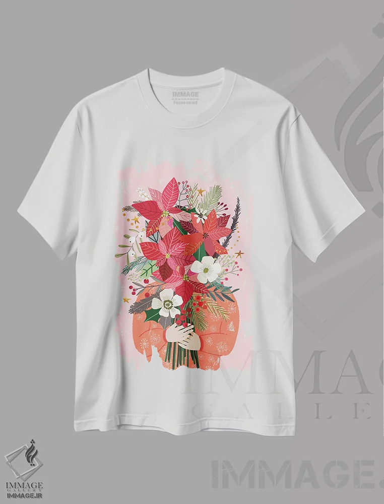تیشرت سفید طرح دار – تیشرت مناسبتی ,دسته گل کریسمس اثر میا چارّو فروشگاه ایماژ تیشرت طرح مناسبتی ,دسته گل کریسمس اثر میا چارّو