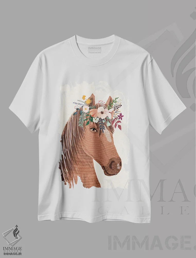 تیشرت سفید طرح دار – تیشرت حیوانات ,اسب اثر میا چارّو فروشگاه ایماژ تیشرت طرح حیوانات ,اسب اثر میا چارّو