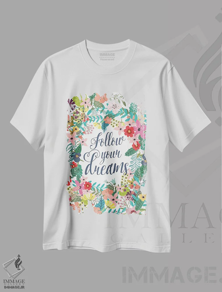 تیشرت سفید طرح دار – تیشرت هنری ,رویایت را دنبال کن اثر میا چارّو فروشگاه ایماژ تیشرت طرح هنری ,رویایت را دنبال کن اثر میا چارّو