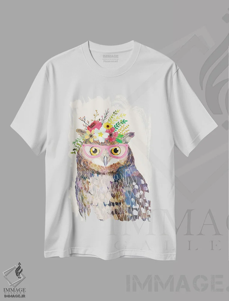 تیشرت سفید طرح دار – تیشرت حیوانات ,جغد سفید اثر میا چارّو فروشگاه ایماژ تیشرت طرح حیوانات ,جغد سفید اثر میا چارّو