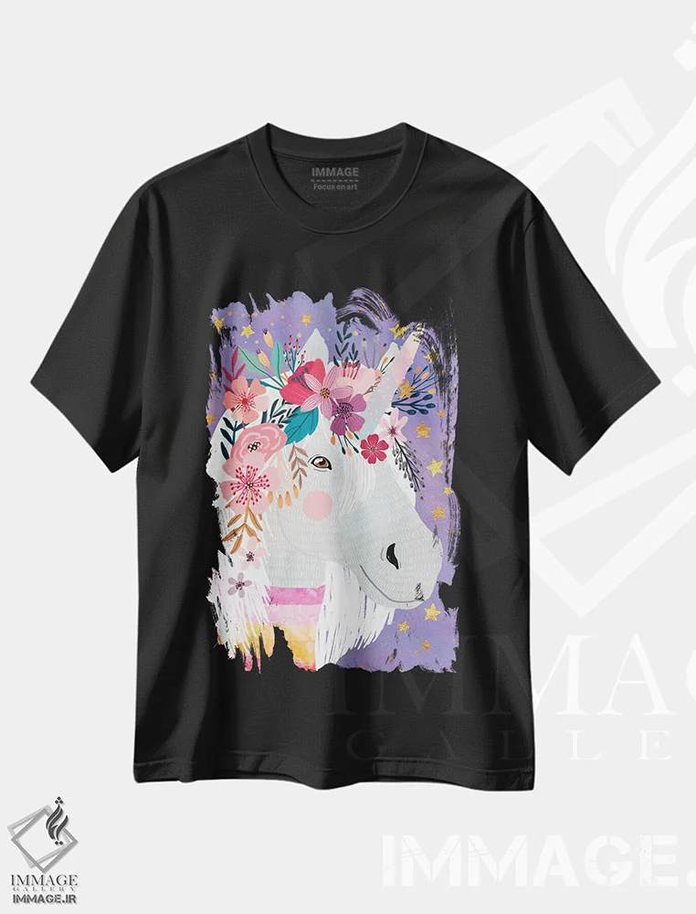 تیشرت مشکی طرح دار – تیشرت فانتزی ,تک شاخ اثر میا چارّو فروشگاه ایماژ تیشرت طرح فانتزی ,تک شاخ اثر میا چارّو