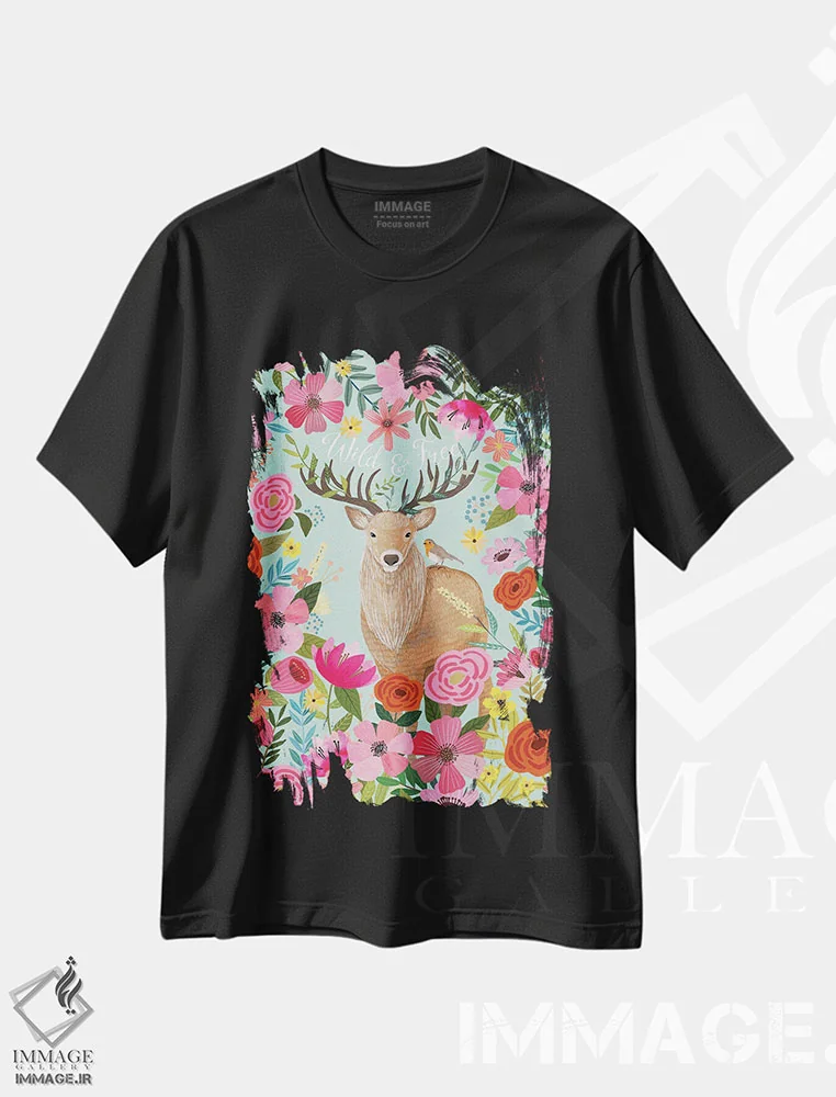 تیشرت سفید طرح دار – تیشرت فانتزی ,گوزن جادویی اثر میا چارّو فروشگاه ایماژ تیشرت طرح فانتزی ,گوزن جادویی اثر میا چارّو