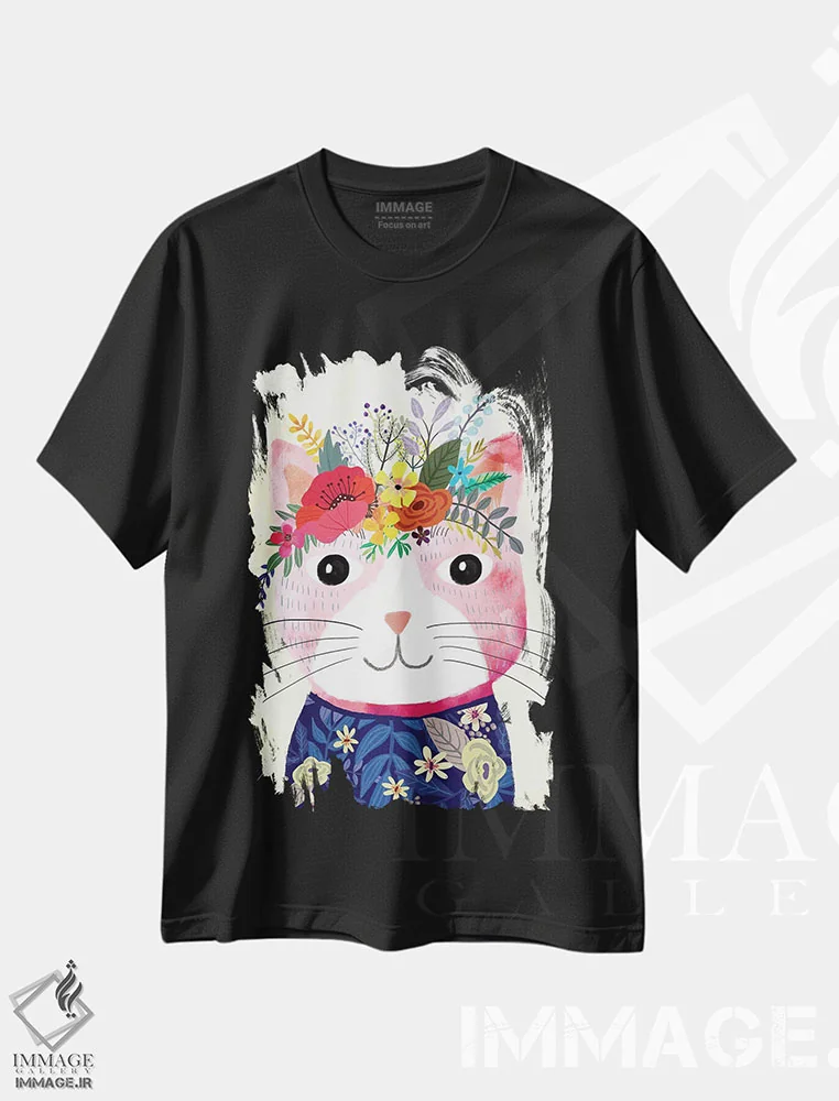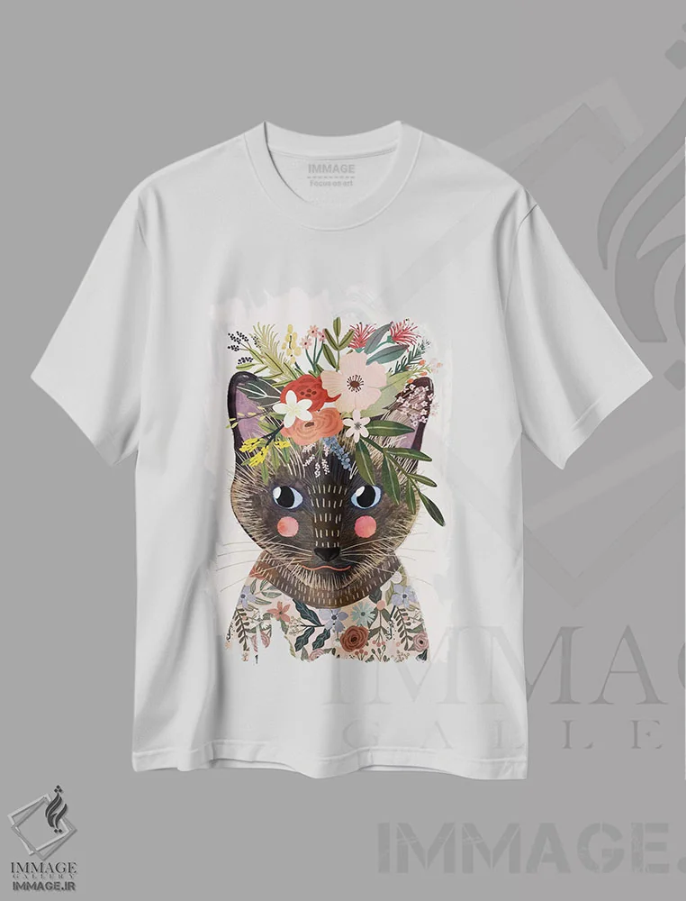 تیشرت سفید طرح دار – تیشرت فانتزی ,گربه گل دوم اثر میا چارّو فروشگاه ایماژ تیشرت طرح فانتزی ,گربه گل دوم اثر میا چارّو