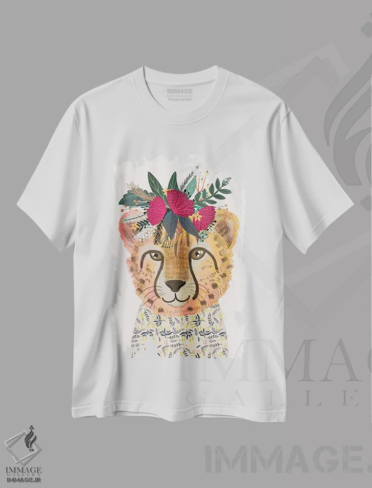 تیشرت سفید طرح دار – تیشرت حیوانات ,یوزپلنگ اثر میا چارّو فروشگاه ایماژ تیشرت طرح حیوانات ,یوزپلنگ اثر میا چارّو
