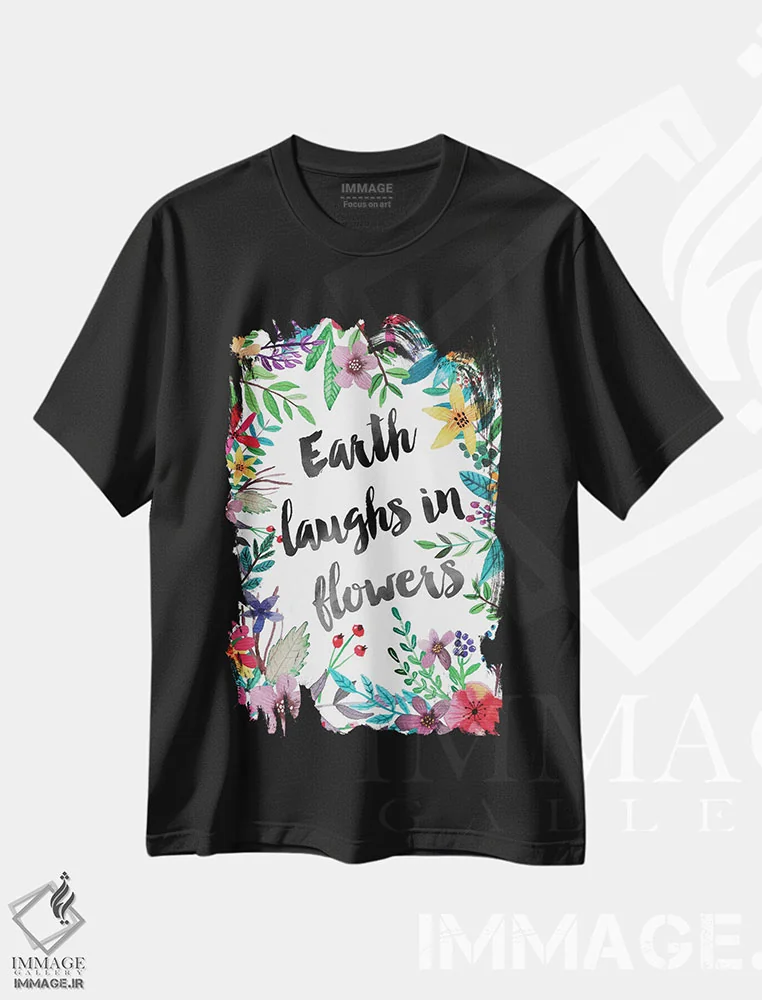 تیشرت مشکی طرح دار – تیشرت طبیعت ,زمین با گل ها می خندد اثر میا چارّو فروشگاه ایماژ تیشرت طرح طبیعت ,زمین با گل ها می خندد اثر میا چارّو