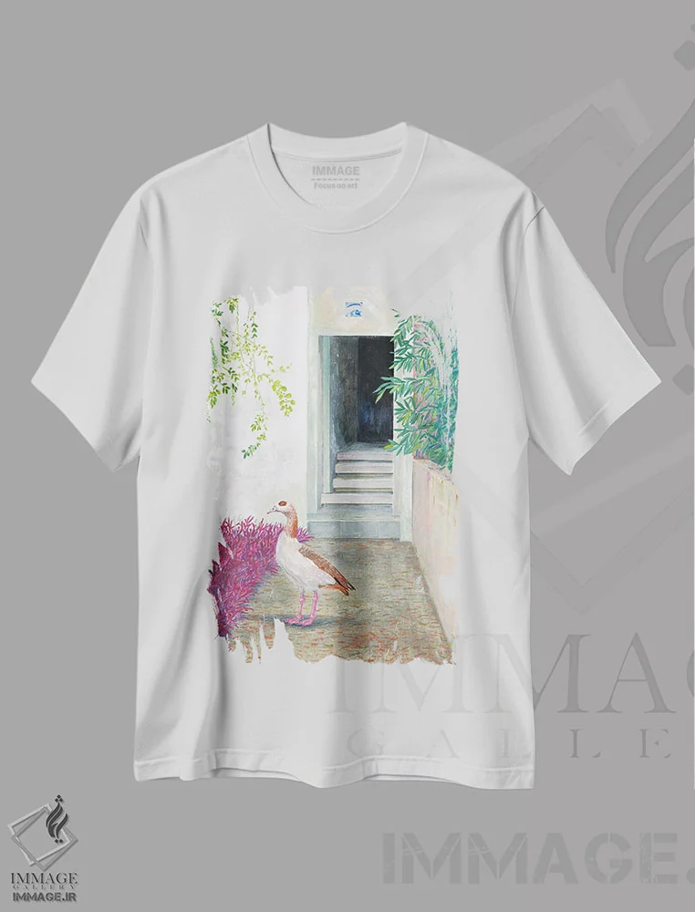 تیشرت سفید طرح دار – تیشرت پرنده ,گلدان حواصیل اثر میری اشت فروشگاه ایماژ تیشرت طرح پرنده ,گلدان حواصیل اثر میری اشت