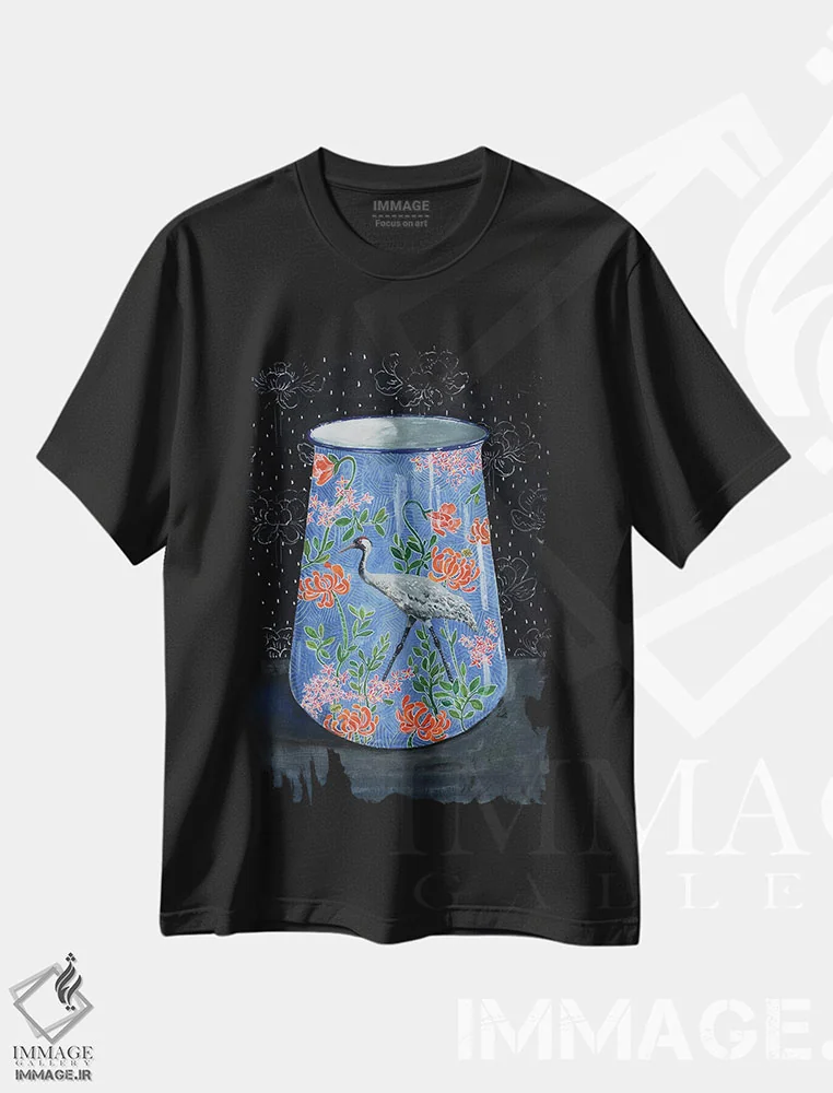 تیشرت مشکی طرح دار – تیشرت پرنده ,گلدان یشم با پرندگان اثر میری اشت فروشگاه ایماژ تیشرت طرح پرنده ,گلدان یشم با پرندگان اثر میری اشت