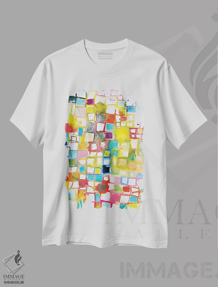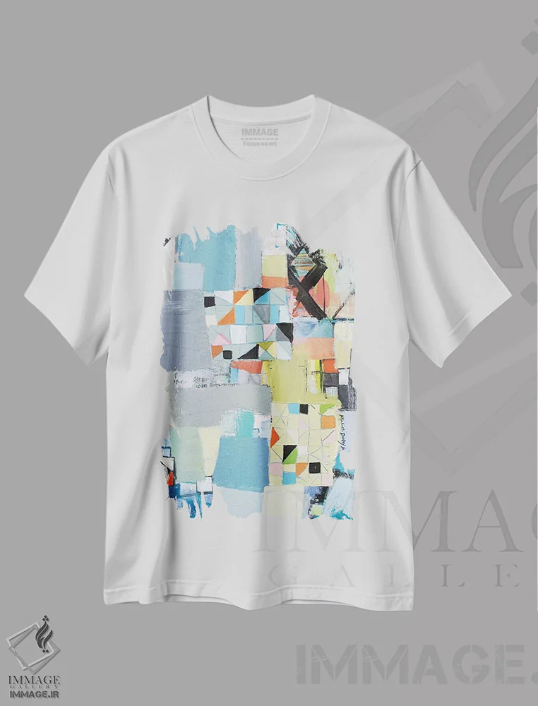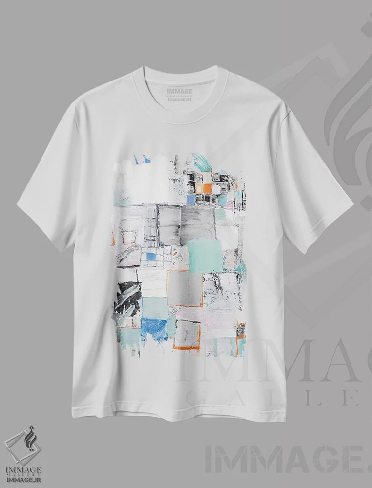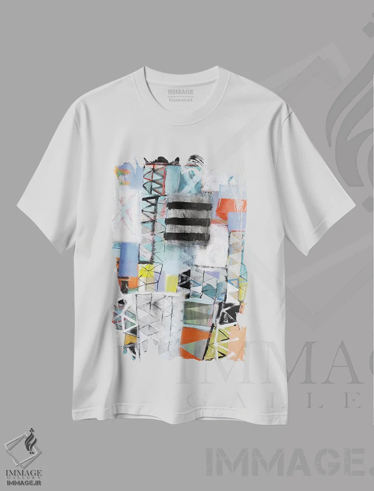 تیشرت سفید طرح دار – تیشرت گرافیکی ,بلوک رنگی اثر میشل دیزلی موفیت فروشگاه ایماژ تیشرت طرح گرافیکی ,بلوک رنگی اثر میشل دیزلی موفیت
