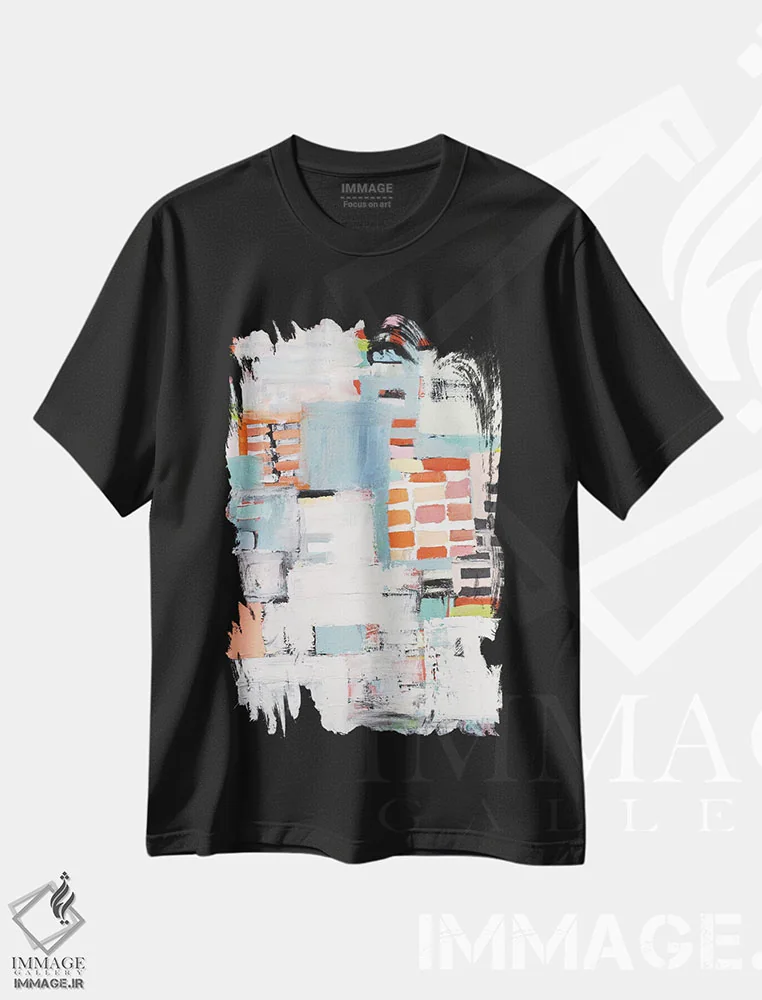 تیشرت مشکی طرح دار – تیشرت انتزاعی ,پنهان از دید اثر میشل دیزلی موفیت فروشگاه ایماژ تیشرت طرح انتزاعی ,پنهان از دید اثر میشل دیزلی موفیت