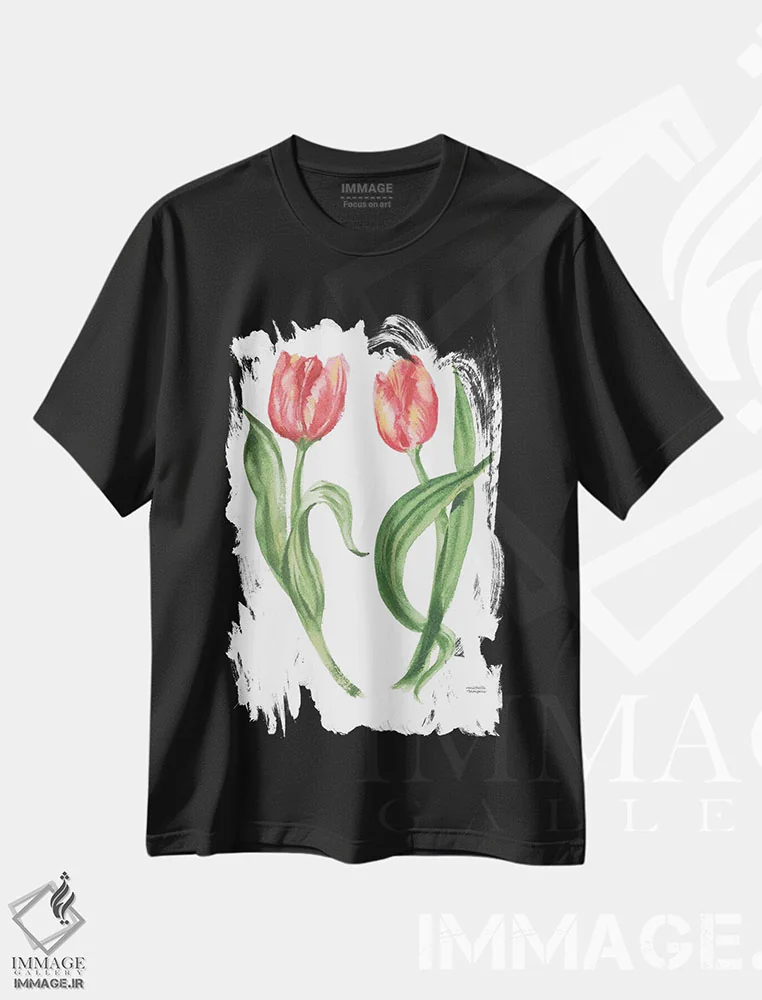 تیشرت مشکی طرح دار – تیشرت طبیعت ,گل های لاله آبرنگ اثر میشل موسپنس فروشگاه ایماژ تیشرت طرح طبیعت ,گل های لاله آبرنگ اثر میشل موسپنس