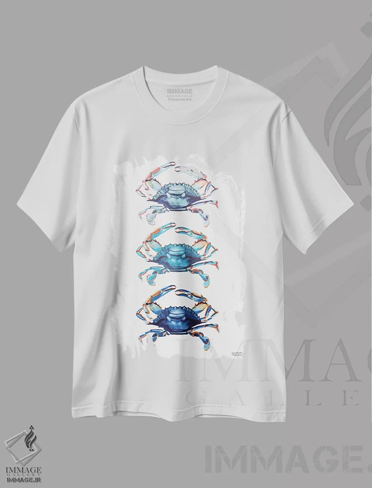 تیشرت سفید طرح دار – تیشرت ساحلی ,سه خرچنگ آبرنگ اثر میشل موسپنس فروشگاه ایماژ تیشرت طرح ساحلی ,سه خرچنگ آبرنگ اثر میشل موسپنس