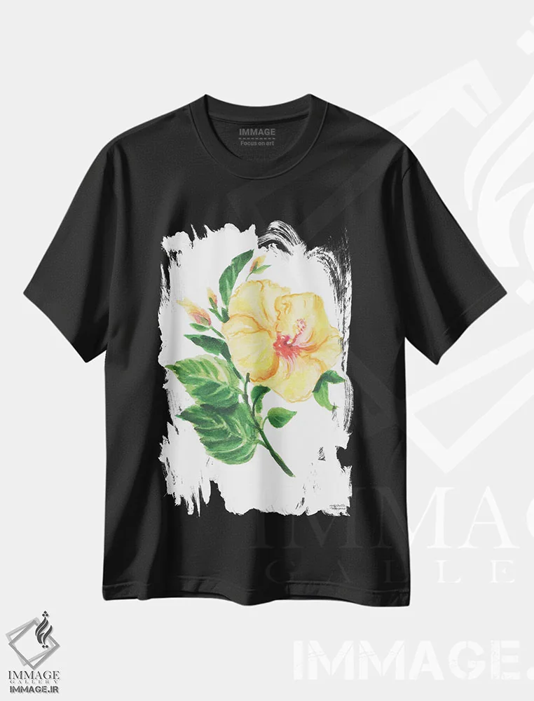 تیشرت مشکی طرح دار – تیشرت گل دار ,هیبیسکوس گیاهی آبرنگ اثر میشل موسپنس فروشگاه ایماژ تیشرت طرح گل دار ,هیبیسکوس گیاهی آبرنگ اثر میشل موسپنس