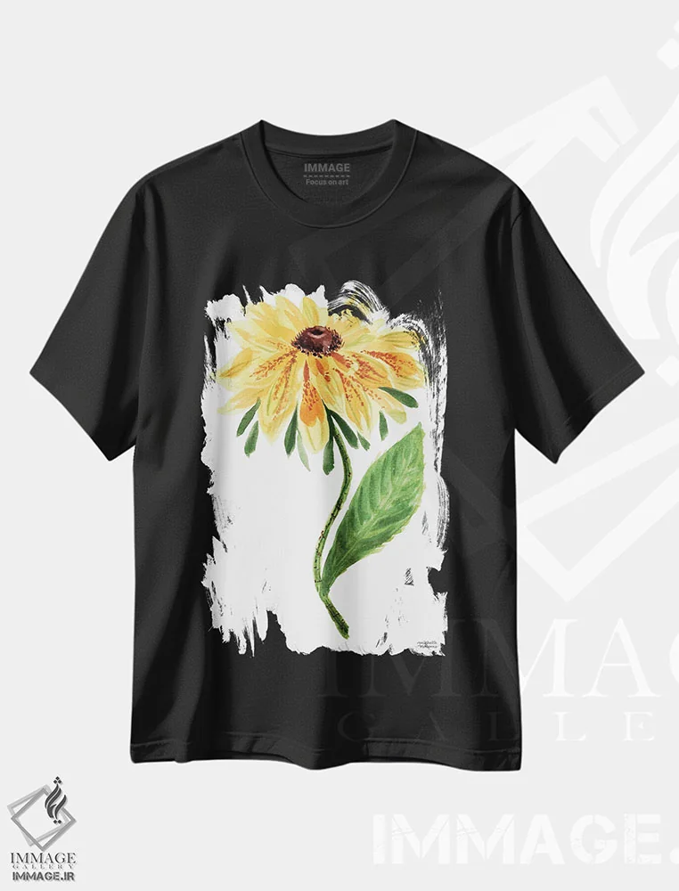تیشرت مشکی طرح دار – تیشرت گل آفتابگردان ,گل آفتابگردان آبرنگ اثر میشل موسپنس فروشگاه ایماژ تیشرت طرح گل آفتابگردان ,گل آفتابگردان آبرنگ اثر میشل موسپنس