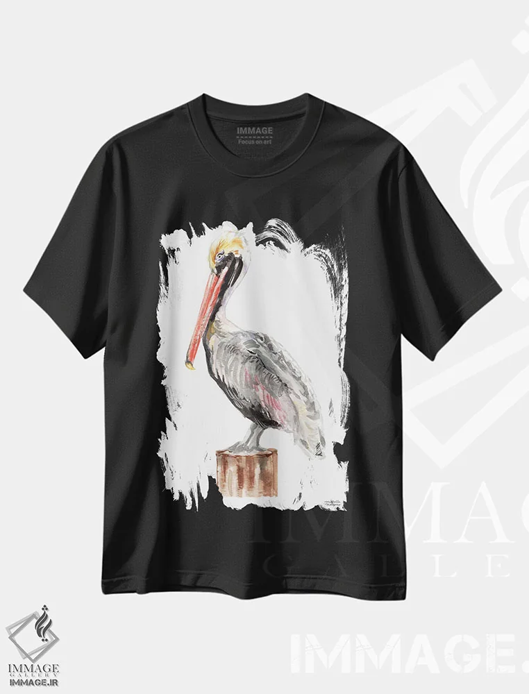 تیشرت مشکی طرح دار – تیشرت حیوانات ,پرنده پلیکان آبرنگ اثر میشل موسپنس فروشگاه ایماژ تیشرت طرح حیوانات ,پرنده پلیکان آبرنگ اثر میشل موسپنس