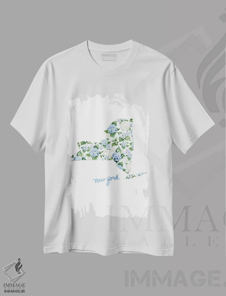تیشرت سفید طرح دار – تیشرت هنری ,گل های آبرنگی ایالت نیویورک اثر میشل موسپنس فروشگاه ایماژ تیشرت طرح هنری ,گل های آبرنگی ایالت نیویورک اثر میشل موسپنس