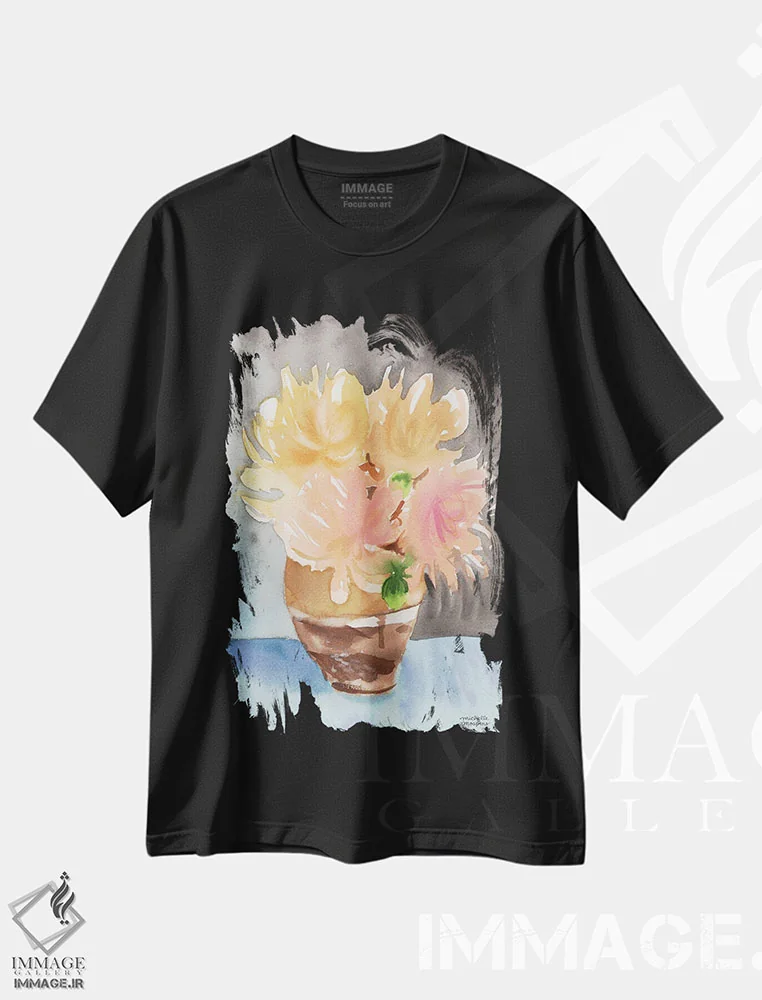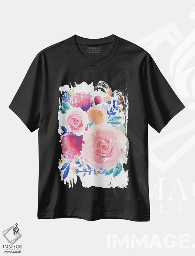 تیشرت مشکی طرح دار – تیشرت گل ,قدرت گل آبرنگ اثر میشل موسپنس فروشگاه ایماژ تیشرت طرح گل ,قدرت گل آبرنگ اثر میشل موسپنس