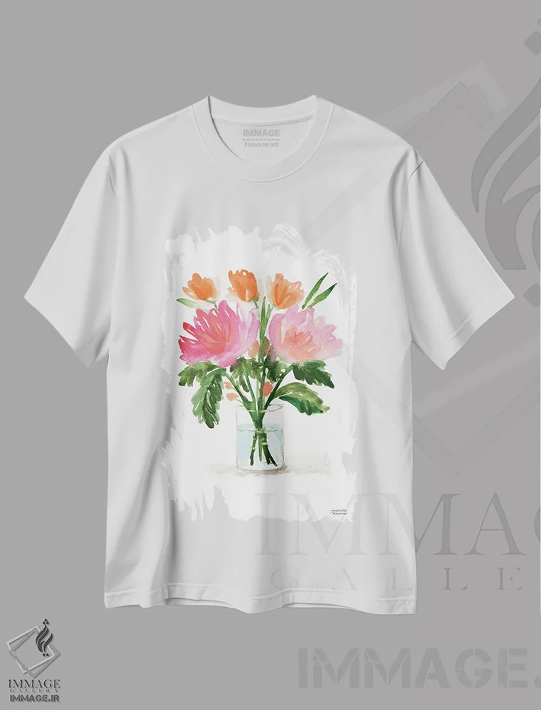 تیشرت سفید طرح دار – تیشرت گلدار ,گل های ماندگار آبرنگ اثر میشل موسپنس فروشگاه ایماژ تیشرت طرح گلدار ,گل های ماندگار آبرنگ اثر میشل موسپنس