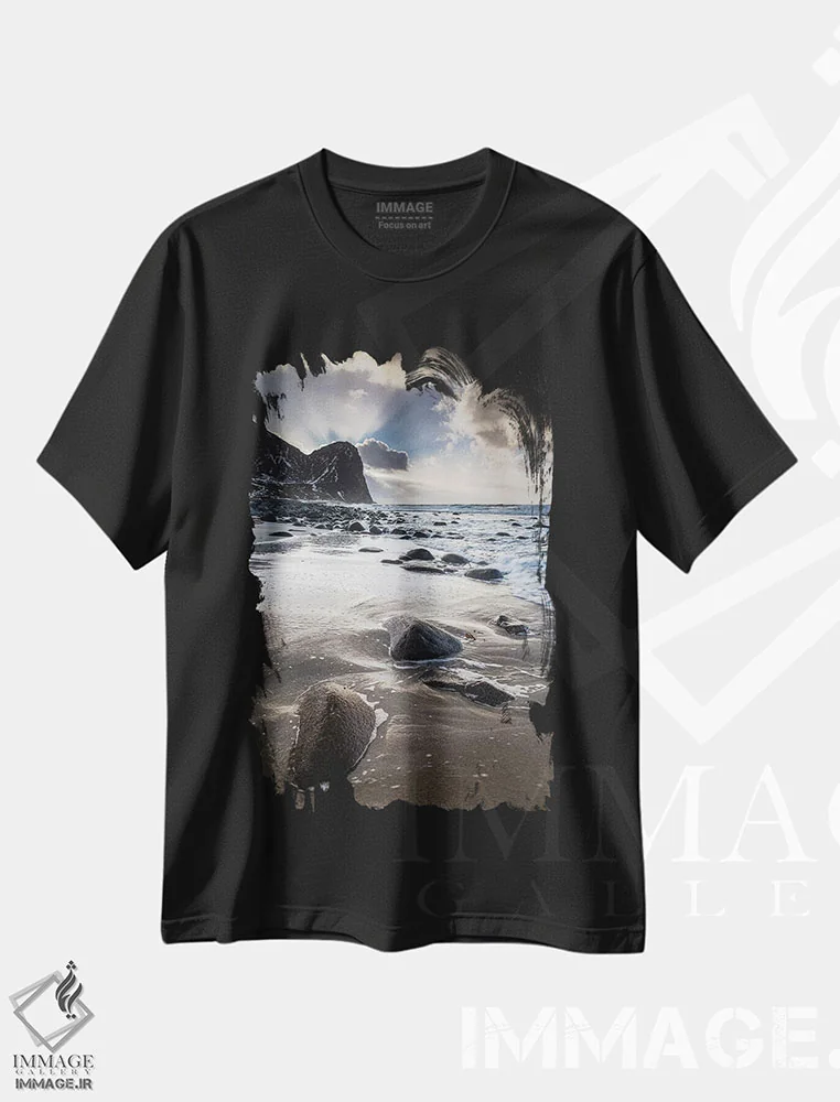 تیشرت مشکی طرح دار نروژ، لوفوتن، ساحل اونستاد، تزئینی اثر میکولاج گوسپودرک | فروشگاه ایماژ تیشرت طرح دار نروژ، لوفوتن، ساحل اونستاد اثر میکولاج گوسپودرک