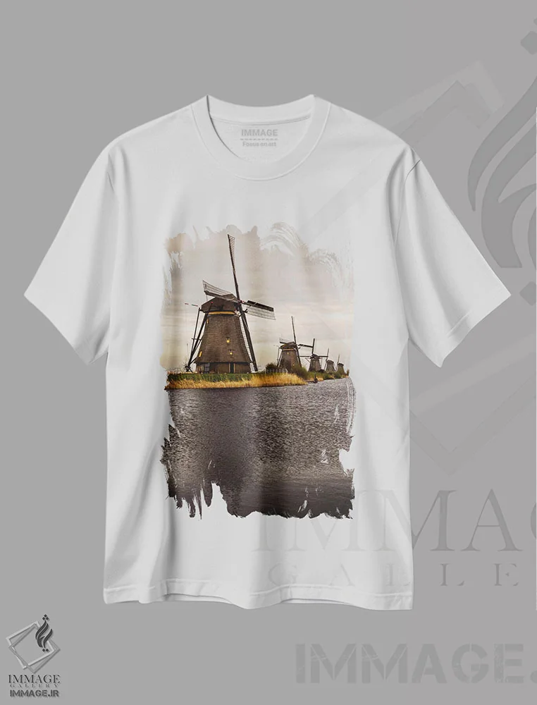 تیشرت سفید طرح دار هلند، کیندردیک، آسیاب های بادی، مدیوم اثر میکولاج گوسپودرک | فروشگاه ایماژ تیشرت طرح دار هلند، کیندردیک، آسیاب های بادی اثر میکولاج گوسپودرک