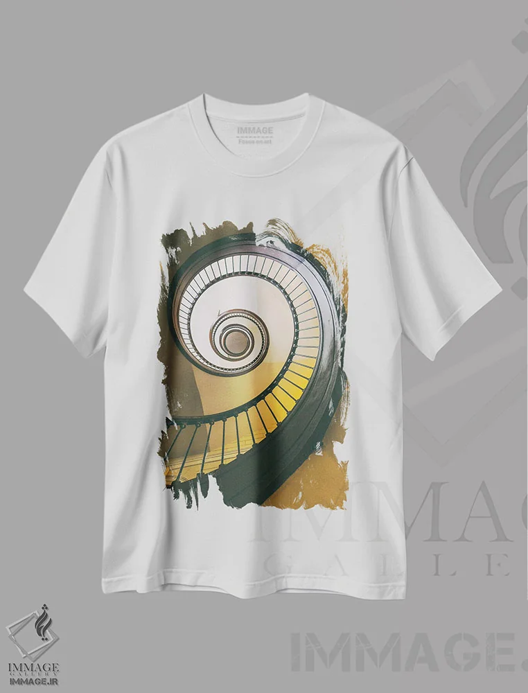 تیشرت سفید طرح دار پله ها، مدیوم اثر میکولاج گوسپودرک | فروشگاه ایماژ تیشرت طرح دار پله ها اثر میکولاج گوسپودرک