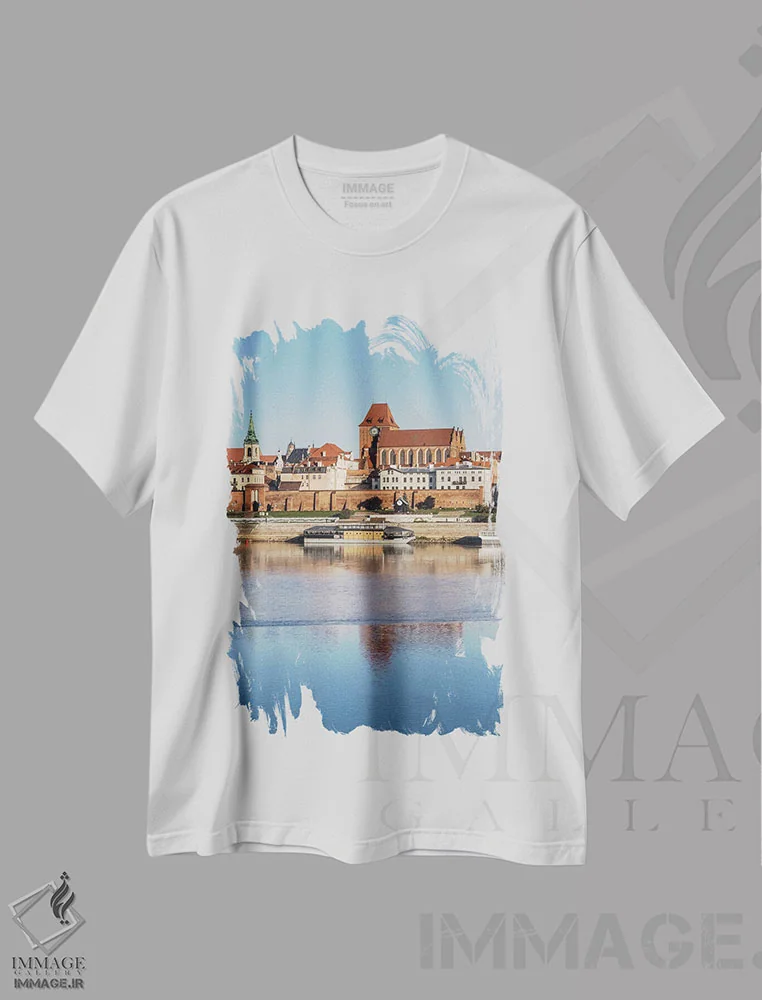 تیشرت سفید طرح دار تورون، ویستولا، شهر قدیمی، لهستان، مدیوم اثر میکولاج گوسپودرک | فروشگاه ایماژ تیشرت طرح دار تورون، ویستولا، شهر قدیمی، لهستان اثر میکولاج گوسپودرک