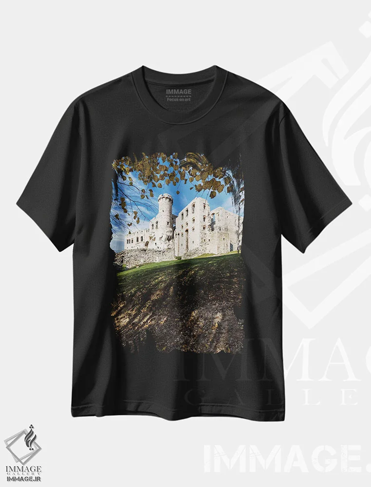 تیشرت مشکی طرح دار قلعه اوگرودزینیتس، پاییز، لهستان، مدیوم اثر میکولاج گوسپودرک | فروشگاه ایماژ تیشرت طرح دار قلعه اوگرودزینیتس، پاییز، لهستان اثر میکولاج گوسپودرک