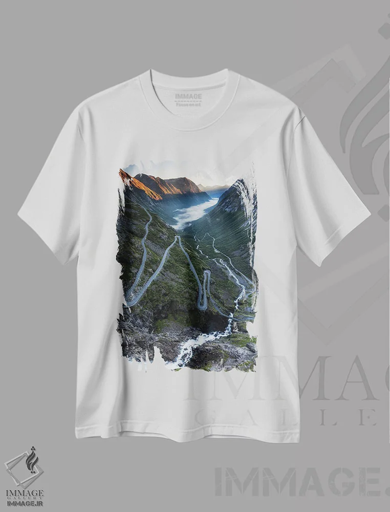 تیشرت سفید طرح دار جاده کوهستانی مارپیچ ترولستیگن، نروژ، مدیوم اثر میکولاج گوسپودرک | فروشگاه ایماژ تیشرت طرح دار جاده کوهستانی مارپیچ ترولستیگن، نروژ اثر میکولاج گوسپودرک