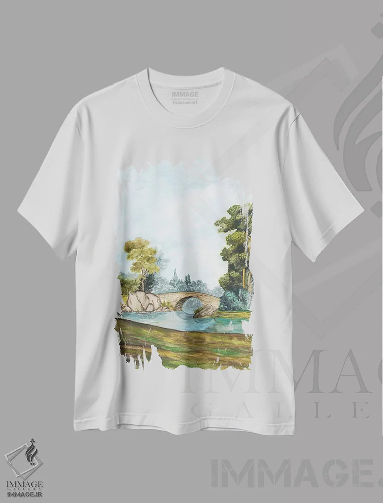 تیشرت سفید طرح دار کاغذ دیواری منظره دار فرانسوی سه، دکور معاصر اثر نائومی مک کاویت | فروشگاه ایماژ تیشرت طرح دار کاغذ دیواری منظره دار فرانسوی سه اثر نائومی مک کاویت