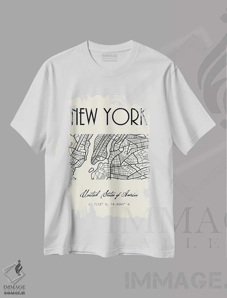 تیشرت سفید طرح دار نقشه شهر نیویورک، تزئینی اثر نوردیک پرینت استودیو | فروشگاه ایماژ تیشرت طرح دار نقشه شهر نیویورک اثر نوردیک پرینت استودیو