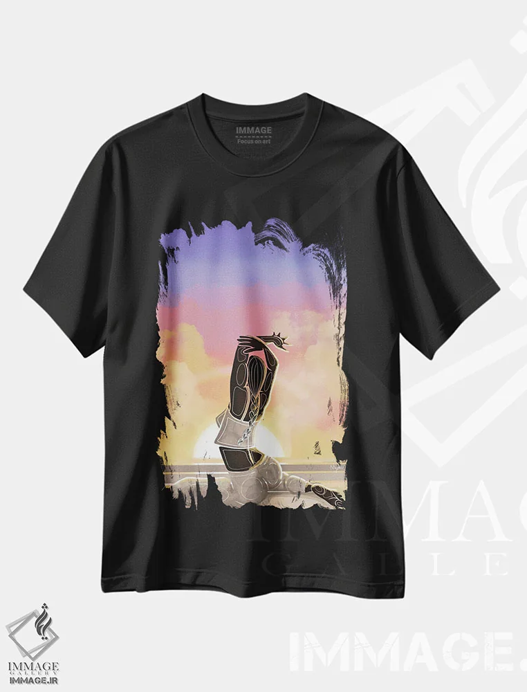 تیشرت مشکی طرح دار "تعادل"، هنر آمریکایی آفریقایی تبار اثر نیدیا دراز | فروشگاه ایماژ تیشرت طرح دار "تعادل" اثر نیدیا دراز