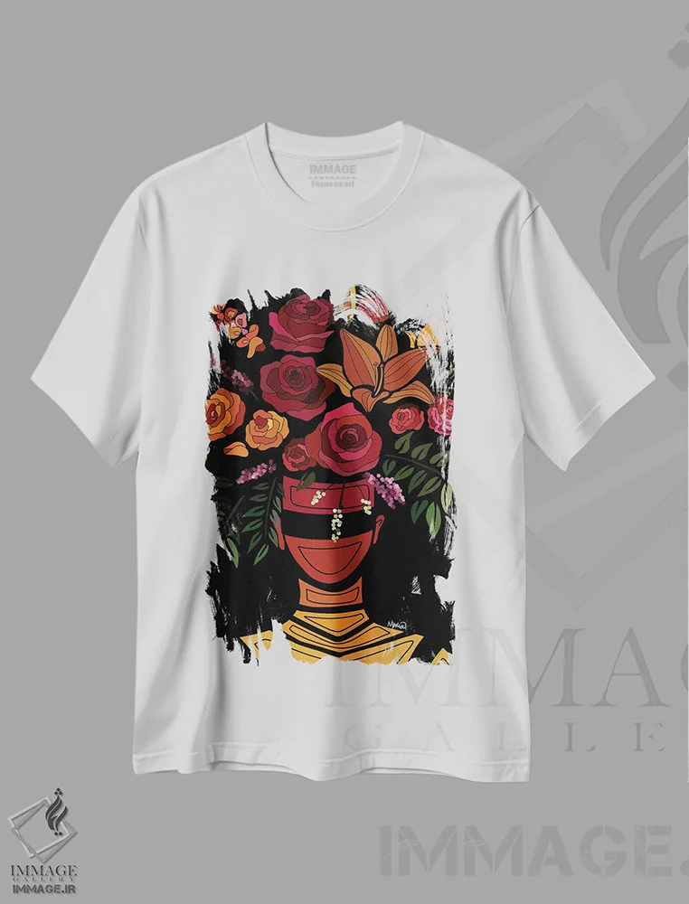 تیشرت سفید طرح دار "شکوفا شدن"، هنر دیجیتال اثر نیدیا دراز | فروشگاه ایماژ تیشرت طرح دار "شکوفا شدن" اثر نیدیا دراز