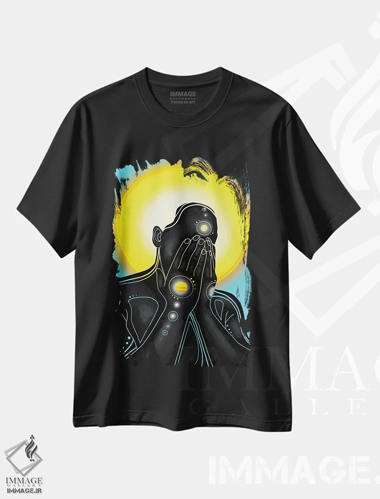تیشرت مشکی طرح دار "درخشش"، هنر آمریکایی آفریقایی تبار اثر نیدیا دراز | فروشگاه ایماژ تیشرت طرح دار "درخشش" اثر نیدیا دراز