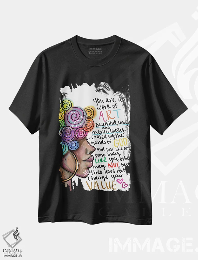 تیشرت مشکی طرح دار یک پیام، هنر آمریکایی آفریقایی تبار اثر نیدیا دراز | فروشگاه ایماژ تیشرت طرح دار یک پیام اثر نیدیا دراز