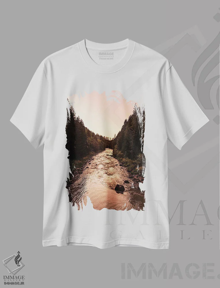 تیشرت سفید طرح دار – تیشرت طبیعت ,غروب رودخانه وحشی در جنگل اثر نیچر مجیک فروشگاه ایماژ